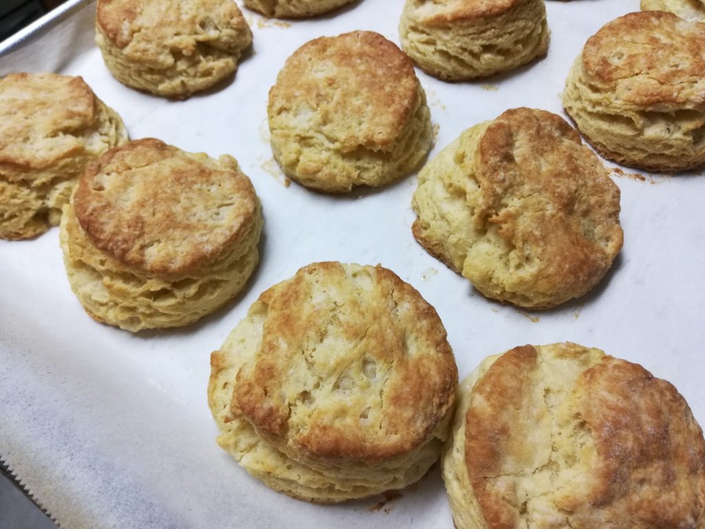 I really need to get over myself. And I really need to fix my longing for strays at this time of year, so I’ll work on how to deal with that. In the meantime, I had a biscuit revelation. Before marrying Hubs, my house in the Willamette Valley had no air conditioning. Most homes in Oregon don’t. I know! Shocking, right?! Anyway, I had been making my biscuits by hand blending the butter chunks into the flour and they just weren’t as good as when I made them in my hometown….the land of central air….because the butter wouldn’t stay frozen. The other day, I threw my butter chunks and flour into the food processor. The butter stayed hard, yet reduced in size and the outcome was perfect. I also changed up the buttermilk. I used the 2% fat Bulgarian instead of the lowfat 1%.