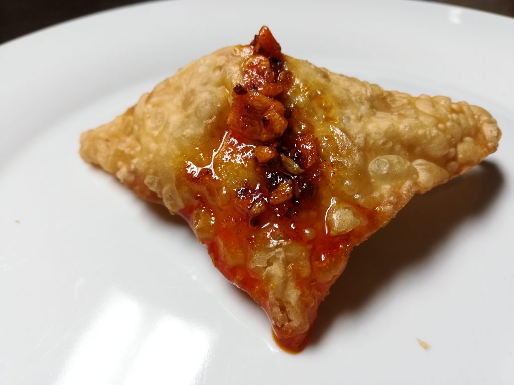 Next was the crab rangoons. Ok, for me there is nothing worse than a mouthful of hot cream cheese that faintly tastes like something from the ocean. Gross. So years ago, I made my own filling. More crab, less cream cheese. Way less. I also don’t get fussy with the wrapper…flat triangles are just fine. The purse style pokes the roof of my mouth. We topped them with this crispy garlic chili oil that I found in the Asian market that no one can stop eating.